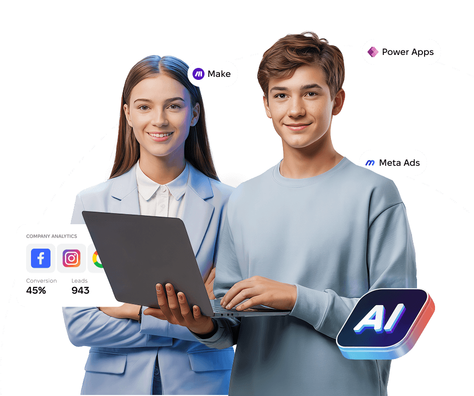 В програмі практичні кейси і проекти в яких студенти навчаються професійно використовувати різноманітні технології: ChatGPT, Midjourney, Figma, Power BI, Google Analytics, Meta Ads, Google Ads та ін.